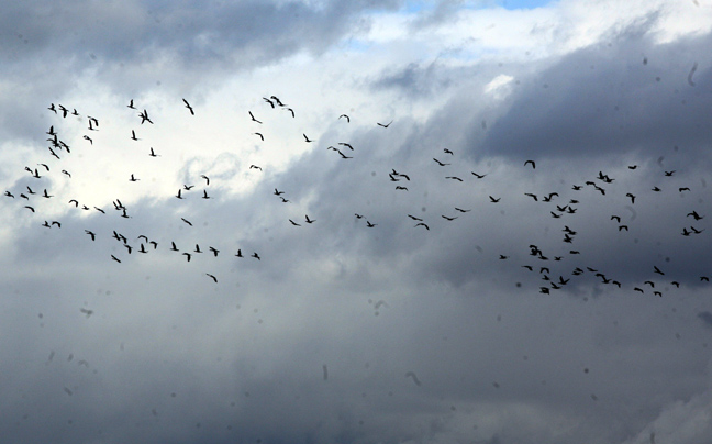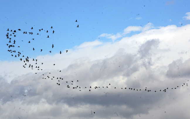 Σμήνος πουλιών γεμίζουν τον αργολικό ουρανό στον υδροβιότοπο της Νέας Κίου και δημιουργούν εντυπωσιακές εικόνες. Ένα ζωντανό σύννεφο που κινείτο από την Ανατολή προς την Δύση και πάλι πίσω «αιχμαλωτίστηκε» από το φακό το μεσημέρι της Τετάρτης.Μικρές «παρέες» ενώνονταν κάθε τόσο σαν να 'χαν όλα μαζί ένα... ουράνιο ραντεβού.