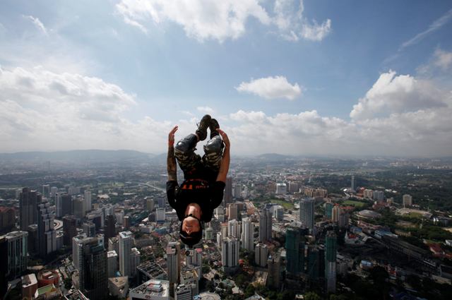 Οι φωτογραφίες που ακολουθούν προέρχονται από το άλμα που πραγματοποίησαν αθλητές του BASE Jumping από τον ύψους 335 μέτρων πύργο, Kuala Lumpur στην Μαλαισία.